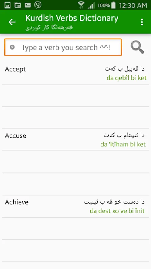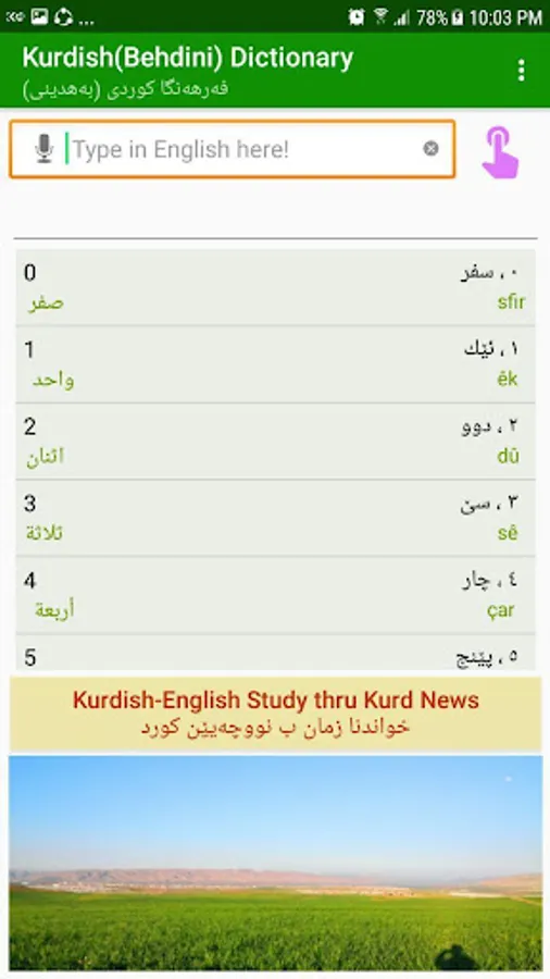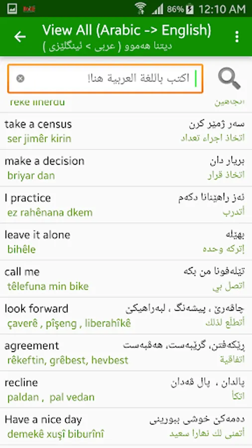 Simple, easy, fast for searching three different words (English - Kurdish - Arabic)