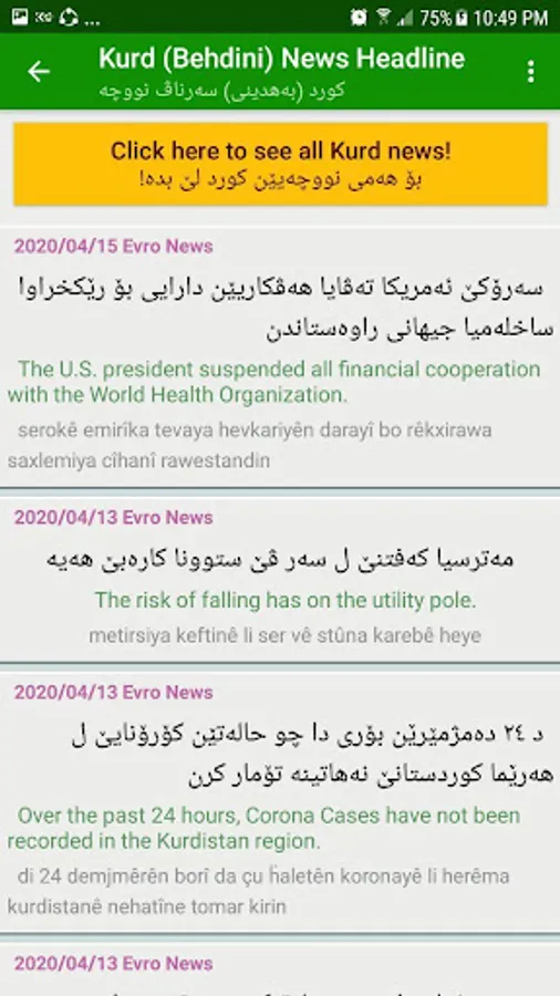 Kurd (Behdini) News Headlines added for Kurdish and English Study.