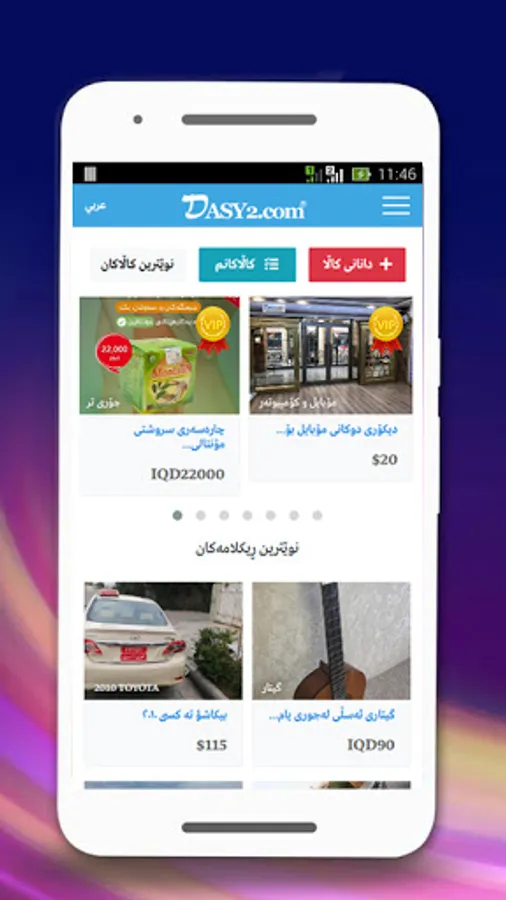 Dasy2.com is an advertising site that brings buyers and sellers together. The site was founded in 2012 and is one of the first websites in Kurdistan/Iraq that focuses entirely on classified ads. Since its establishment, the company has become the most popular website in this area with an ever growing customer base of individuals and small and large businesses.