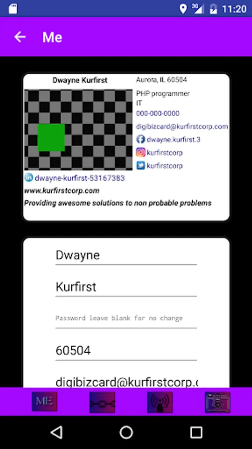 PRESENC3 makes life easier. Tired of searching for people on other social apps? Tired of having thousands of people you don't know? PRESENC3 is a way to keep track of and up to date on people you meet anywhere. It is proximity based to allow only people you know or have met to connect with you. Think of a digital business card with all the ways to follow you in one place. Best of all when you change one aspect of your card, all your connections get updated of the change in real time. No more sending countless emails of new facebook logins, emails, phone numbers or new accounts. Being a security professional myself all aspects of the app are in a highly secured environment with latest encryption tunneling and hashing techniques. Your data is secure. There is no mass search to allow you to keep your privacy and not be afraid of accepting someone you do not know. I also don't believe in capitalism for such a useful tool. The app is free and there are no in app purchases. Feel free to give suggestions. Everyone that downloads the app gets my card as their first connection.