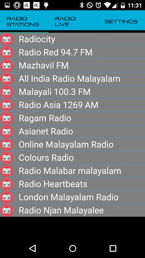 A complete radio for all mallu friends. All icons from iconfinder which is credited under creative common license.