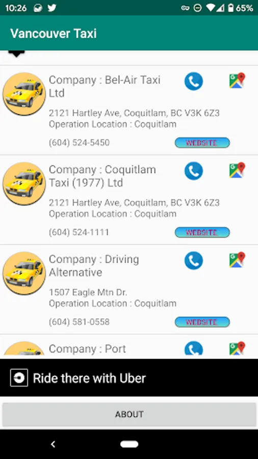 You can call your taxi from with in the app. Please remember the taxi numbers is collected from internet.