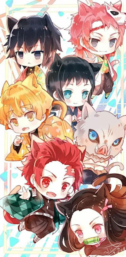 List some character live wallpapers in Kimetsu no Yaiba app: Tanjirou, Nezuko, Zenitsu, Inosuke, Tomioka Giyuu, Kochou Shinobu, Rengoku Kyoujurou, Muzan, etc.