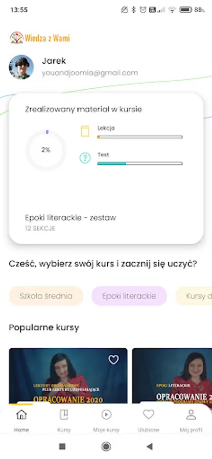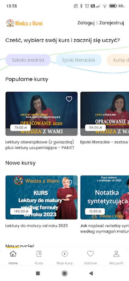 and the application is dedicated to all students who have purchased access to matura courses on the Wiedza z Wami website. Thanks to this application, they can conveniently use the matura exam courses both on the computer and on the phone.