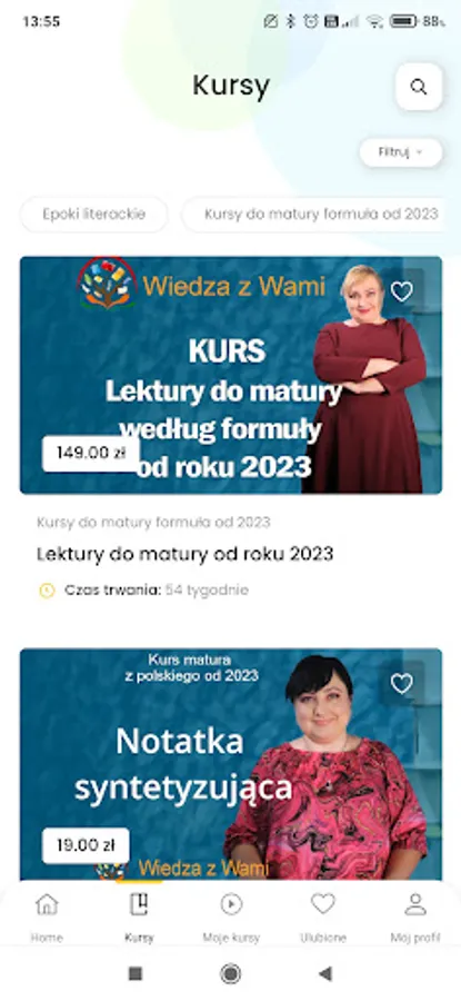The courses on the Wiedza z Wami website and the application prepare for the matura exam according to the 2023 formula and for the eighth-grade exam.