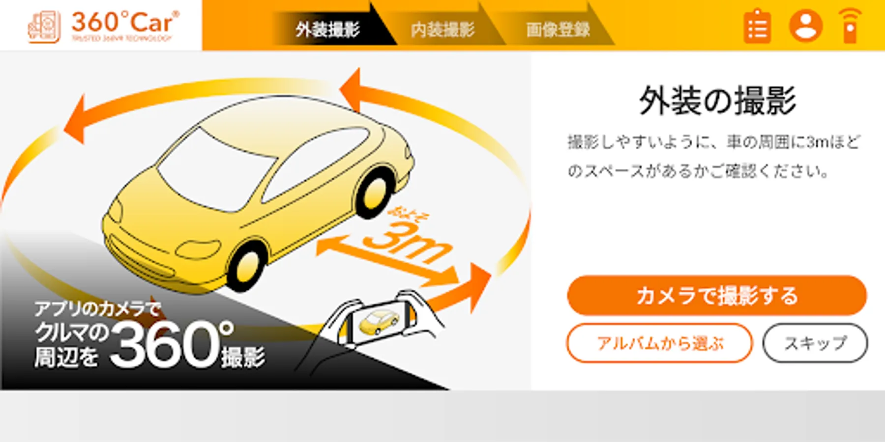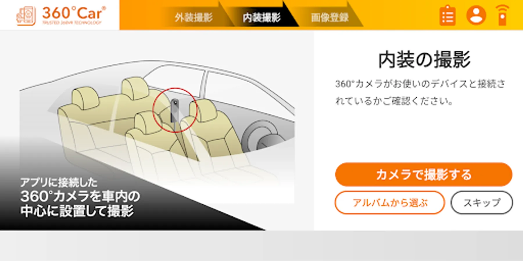 You can upload 360° interior and exterior images of your vehicle directly from the app.