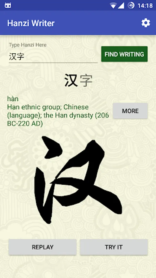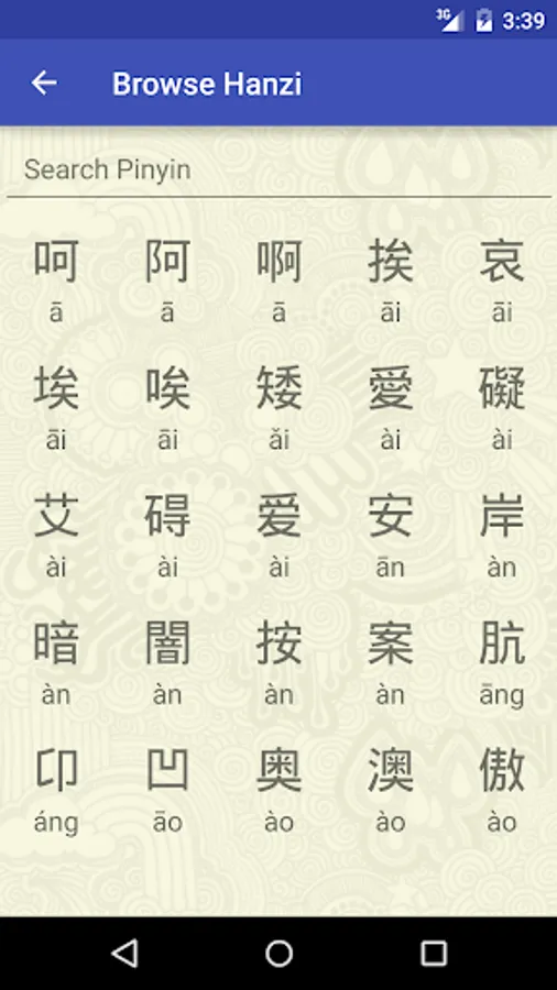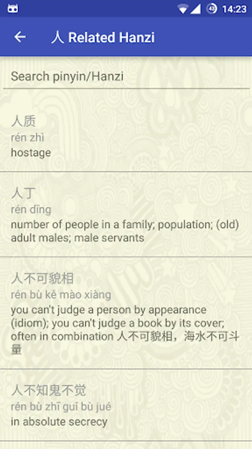 You can find hanzi character by using typing the character or type the pinyin, such as NI or HAO or others.