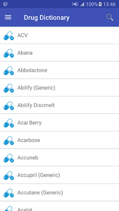 Drug Dictionary is a medical hand book that provides all information about drugs used for medication: uses, dosage, how to take, side effects, precautions, drug interactions, missed dose and storage.