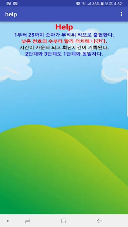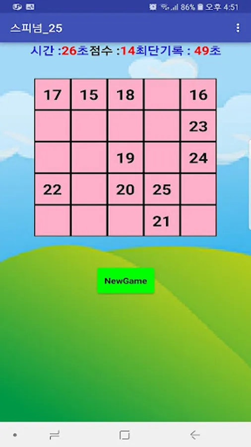 25 numbers appear on the speed touch screen. 1 to 25 occur randomly. Press the number in ascending order from 1. If it is not correct, 'Ding' will beep. Press up to 25 times as soon as the time is countered.