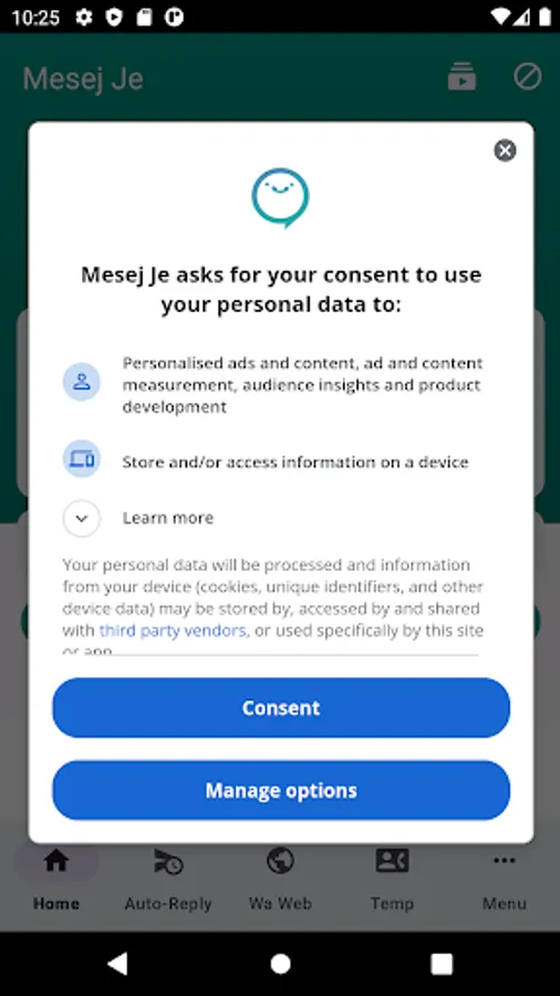 Mesej Je relied on Ads for making this app free. We use services from Ad Mob and Firebase for advertisement and crash reporting. We do not collect any personal data from the users.