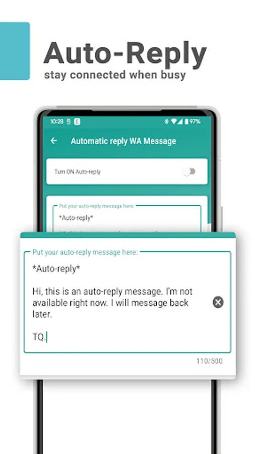 • Reply assistant - Notify your friends or clients when you are away. Customize your unique automatic reply.