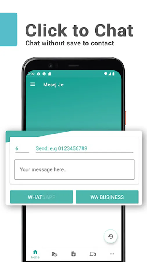 More than 100K users across the world are using Mesej Je every day for free and instantaneously communicate with WA chat without the need to save the phone number to contact. Click to chat, instant chat, or send a file (e.g. doc, xls, or pdf), video, or photo to a WA number with a click of a button. Make your life easy to communicate.
