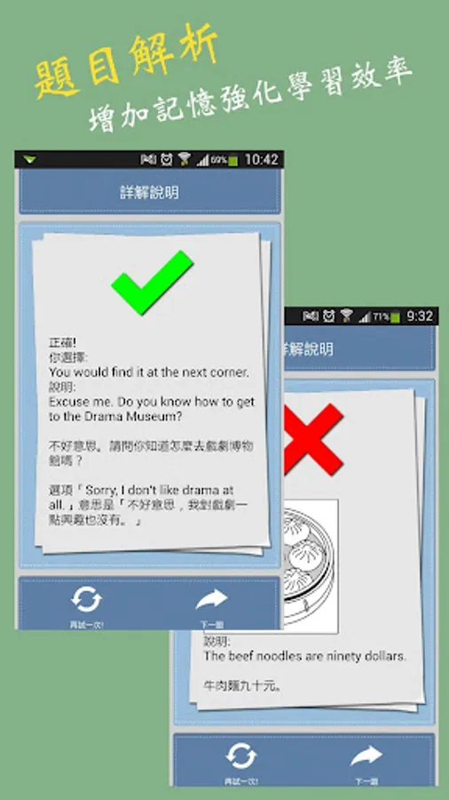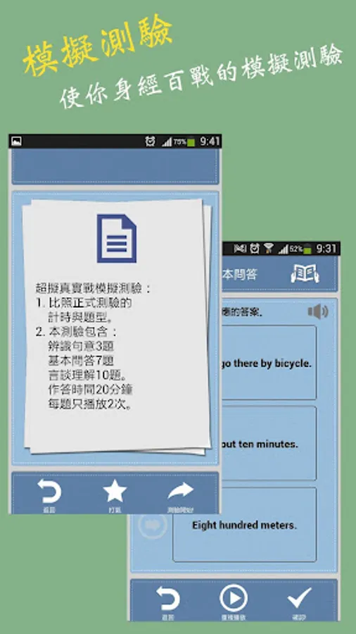 1.上百题独家试题语音MP3,随时随地测验学习。