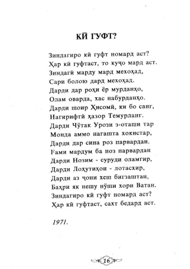 In barnoma shakli PDF-i kitobi gulchini ashyori Ustod Қutbӣ meboshad. "B нi non", "Sangpool", "Kфт guft?" va Kazorҳo misraҳoi pandu ҳikmati Ustod aknun ҳamavaқt bo shumost.