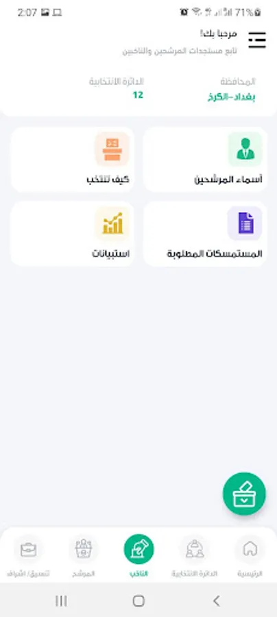 * Providing a trial voting service where the user is notified of the existence of a trial vote through which the user can vote for his preferred candidate within his governorate and constituency and send his vote to the application management team.