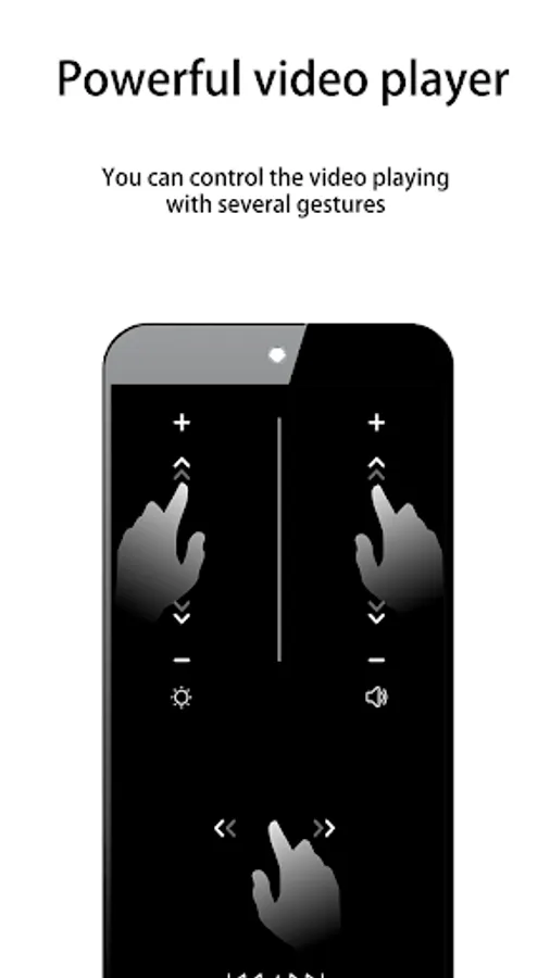 * Powerful video player, supports most of popular formats, and you have serval gestures to control the playing. Moreover you can play the video on smart TV via DLAN