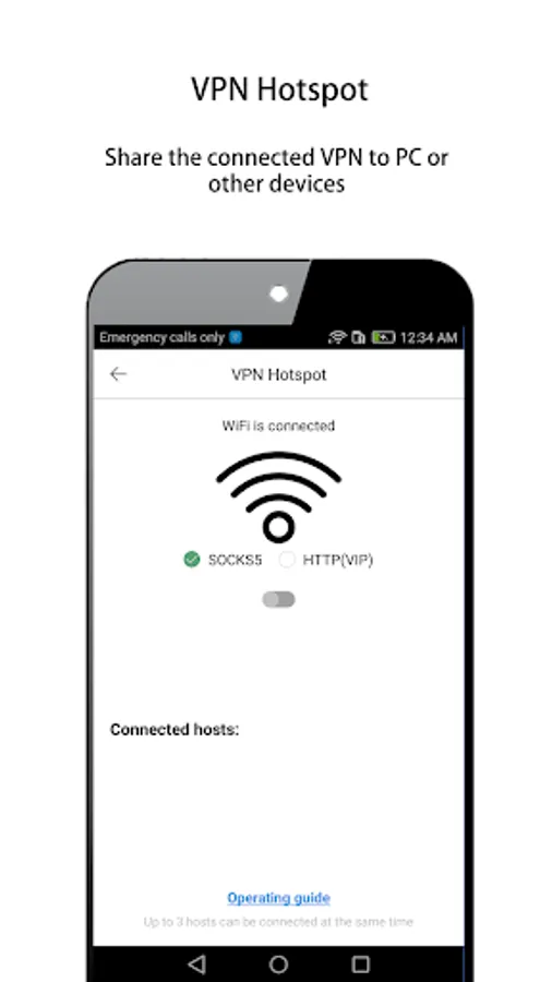* VPN hotspot, share the connected VPN to PC or other devices