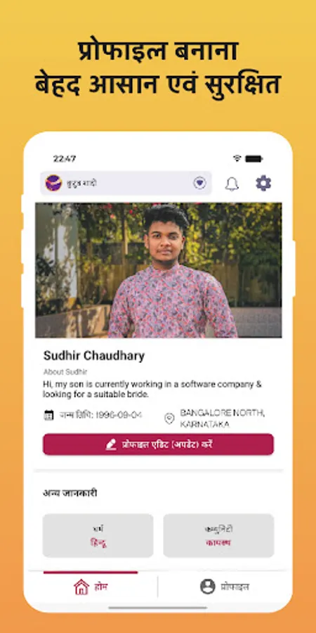 कुटुम्ब शादी, भारतीय सामाजिक matrimony ऐप है।