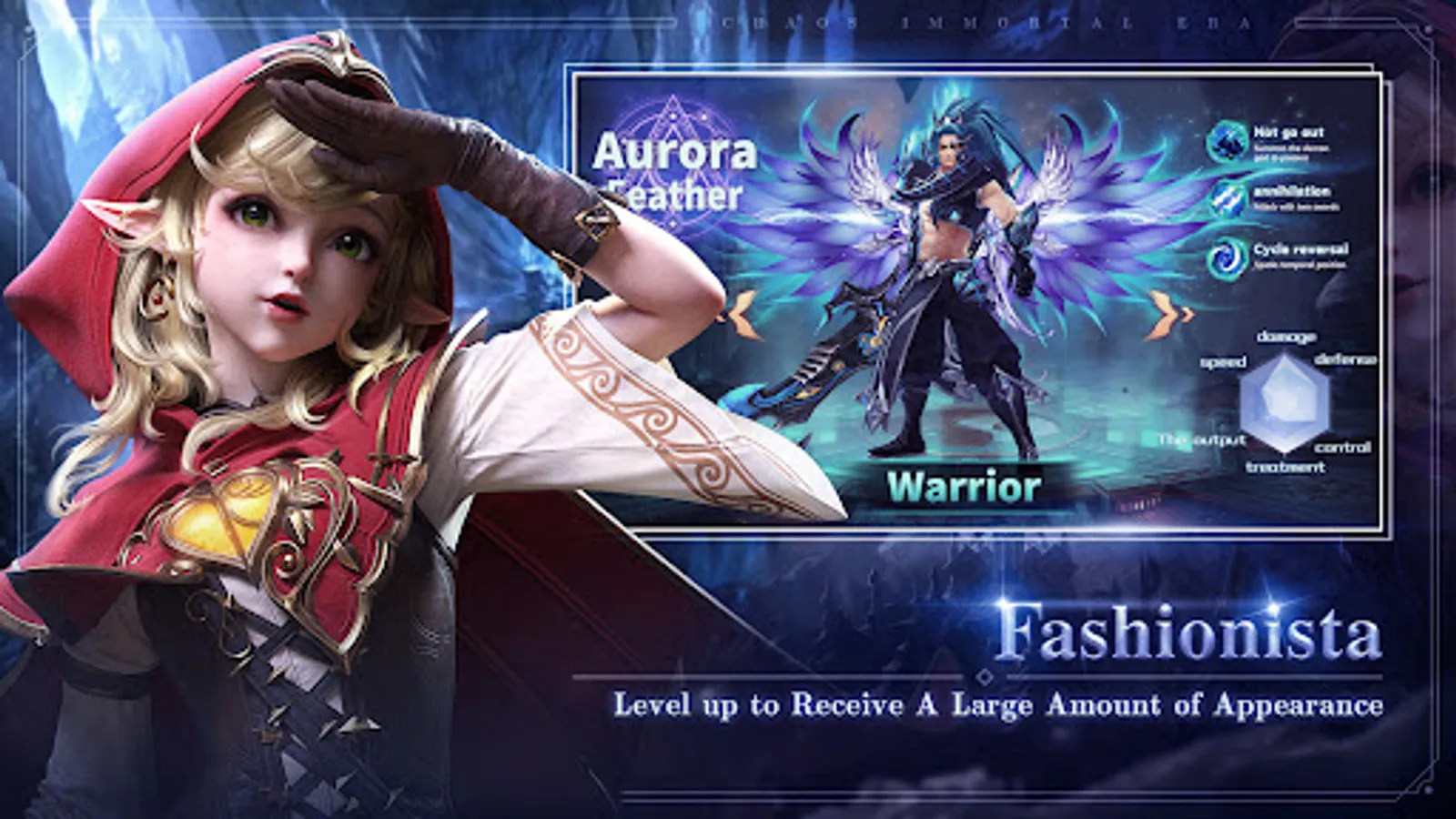 Chaos: Immortal Era is a large 3D fantasy MMORPG with the background of the ancient wilderness. There are a lot of benefits in the game, such as permanent free VIP10, millions of coins, etc., You can buy whatever you want in the store. Incredibly, You can even get recharge vouchers that are equal to the real money when farming. It is the MMO with best benefits ever, and more gifts are waiting for you.