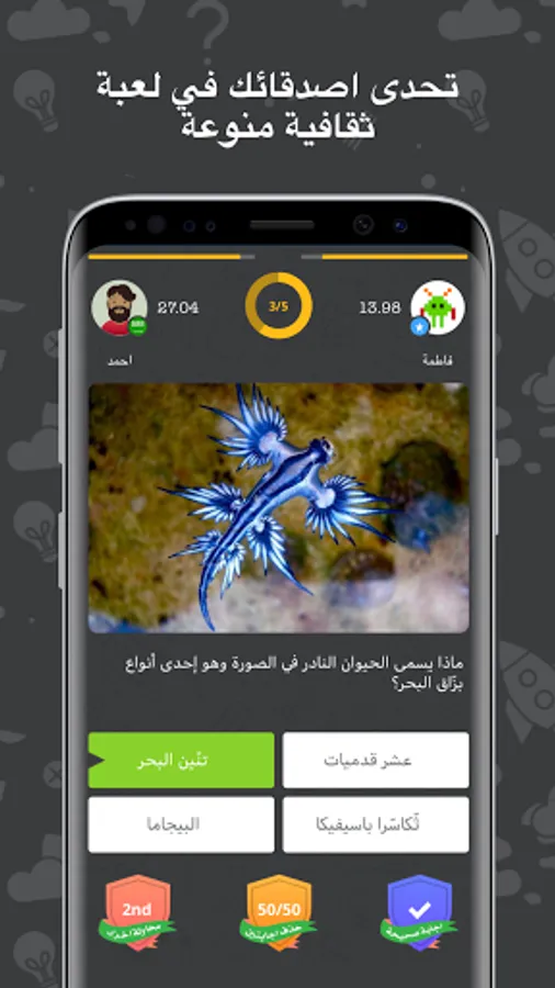 The game of the field is based on the principle of competition between two competitors, the competition consists of 5 rounds in each round asking question and the winner is the one who gets the highest points due to his correct answers in the shortest time.