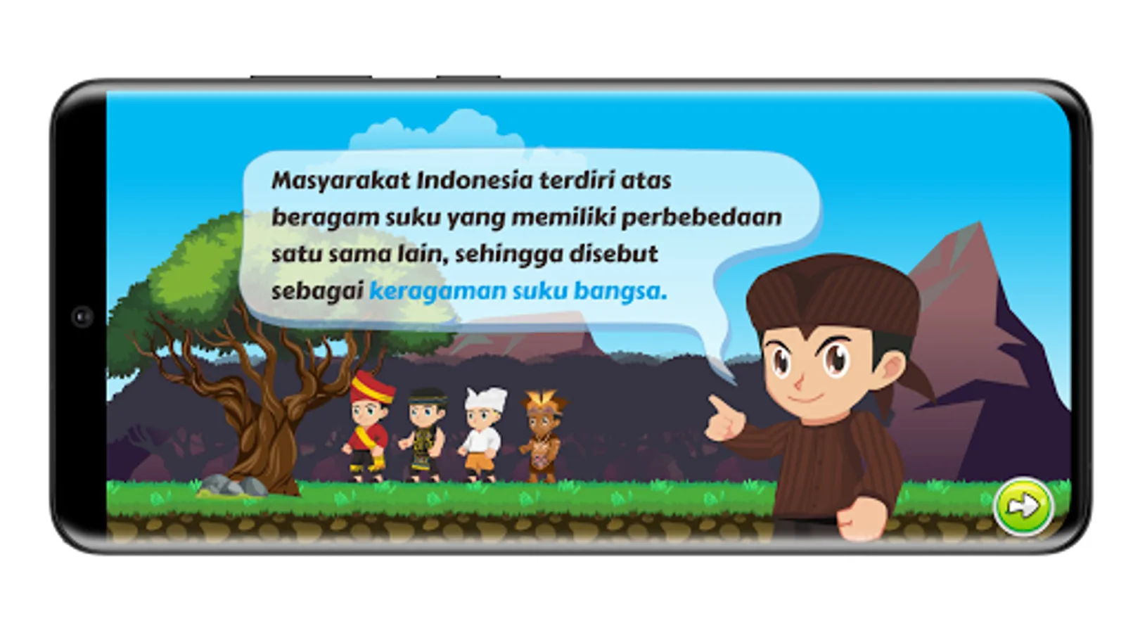 Game Panjol is an educational and adventure themed game which has 6 levels. Broadly speaking, this game consists of 2 parts, namely the material and quiz sections at level (1,3,5), the second is the adventure section at level (2,4,6).