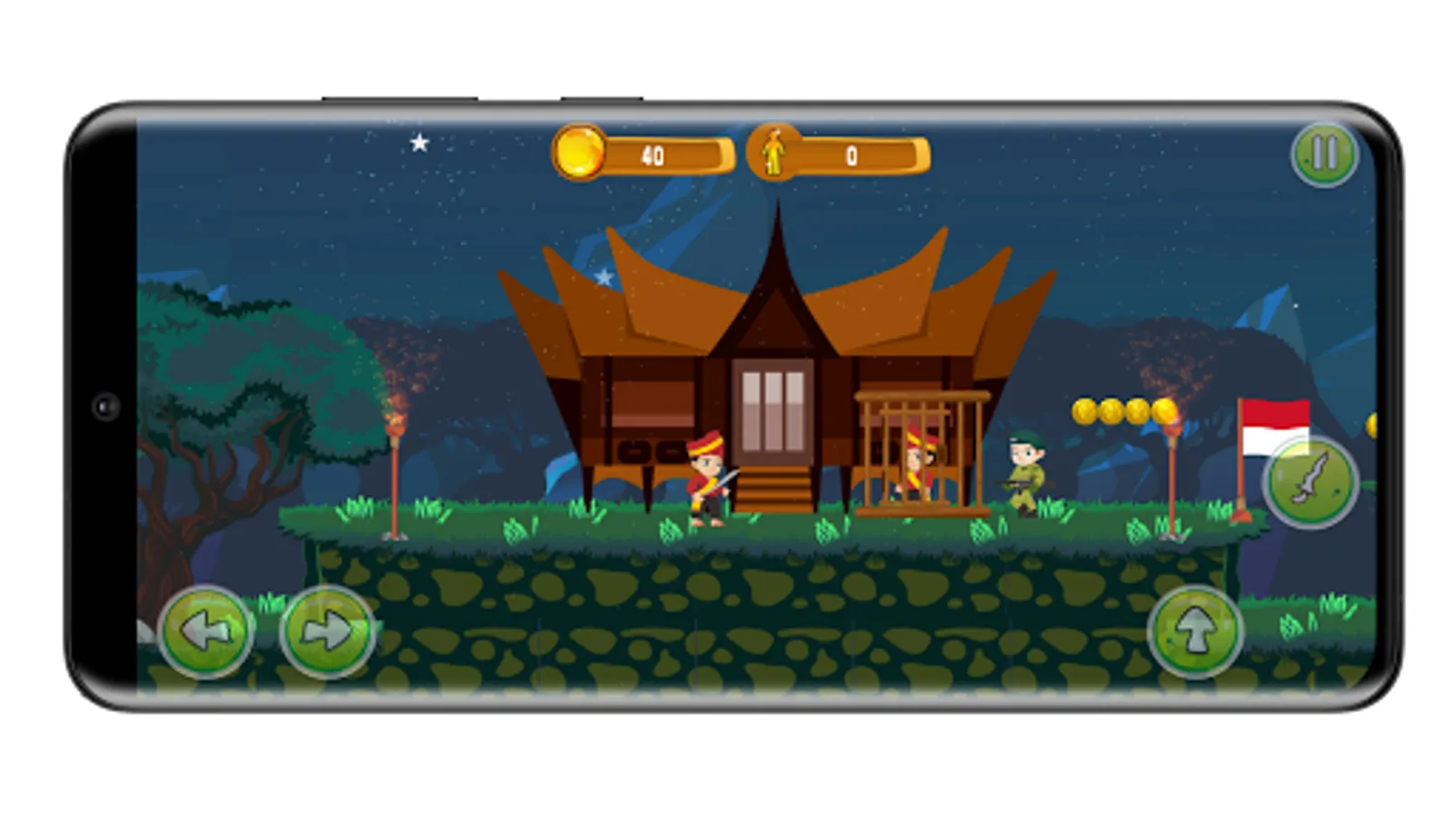 Each adventure level has the same vision, which is to save friends from various tribes (Batak, Papua, Bali, Dayak) from being guarded by invaders and terrorists. We have to save the other tribes by getting out of prison. In the adventure to save friends from other tribes, players will see the traditional houses of each tribe.