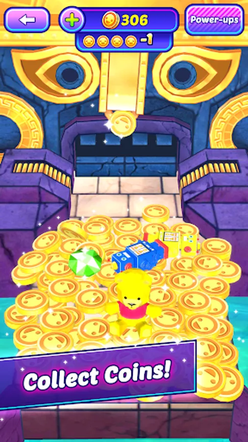 Mayan Coin Pusher, where you strategically drop coins to push them (and prizes) into the bin for points.