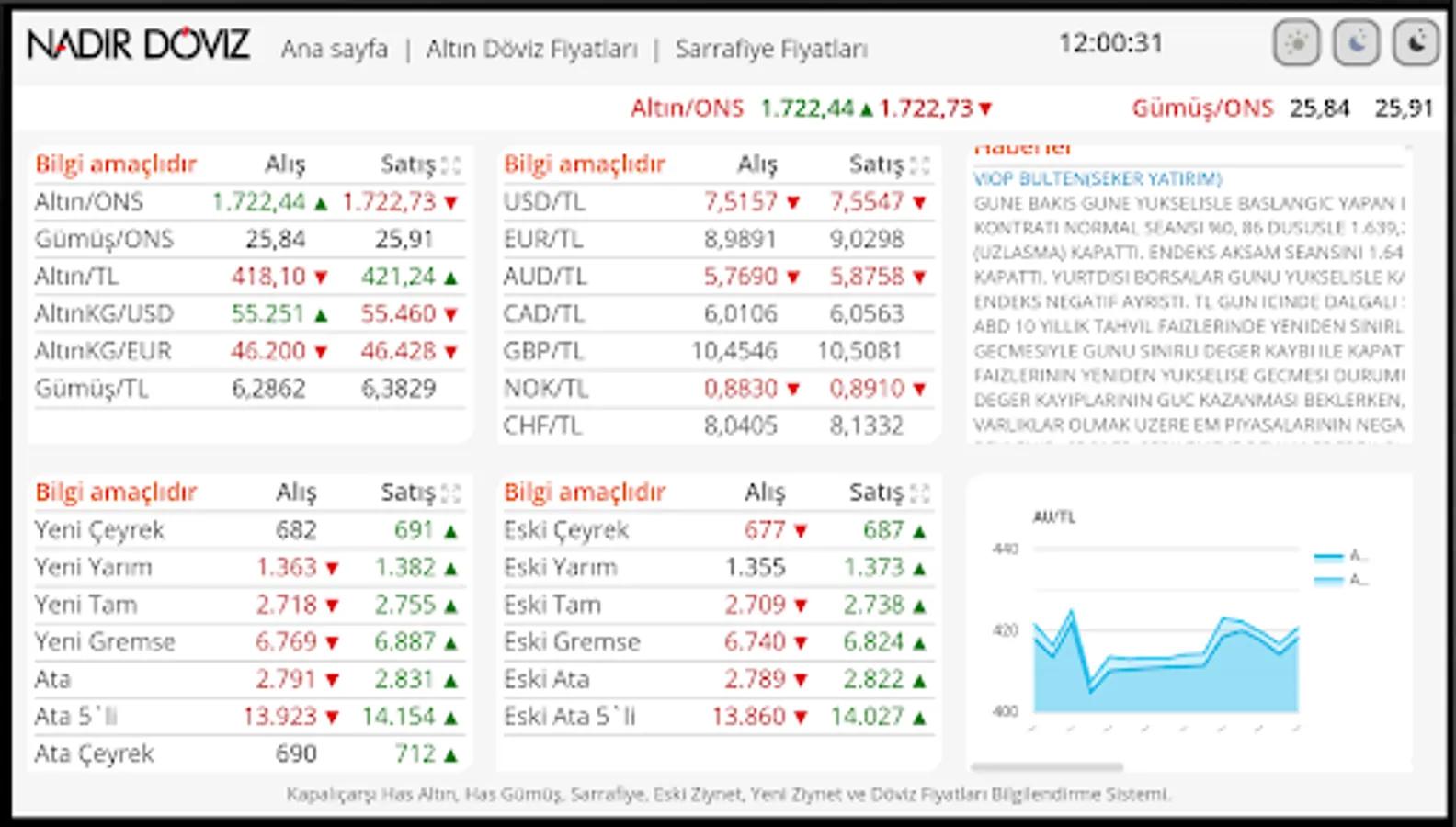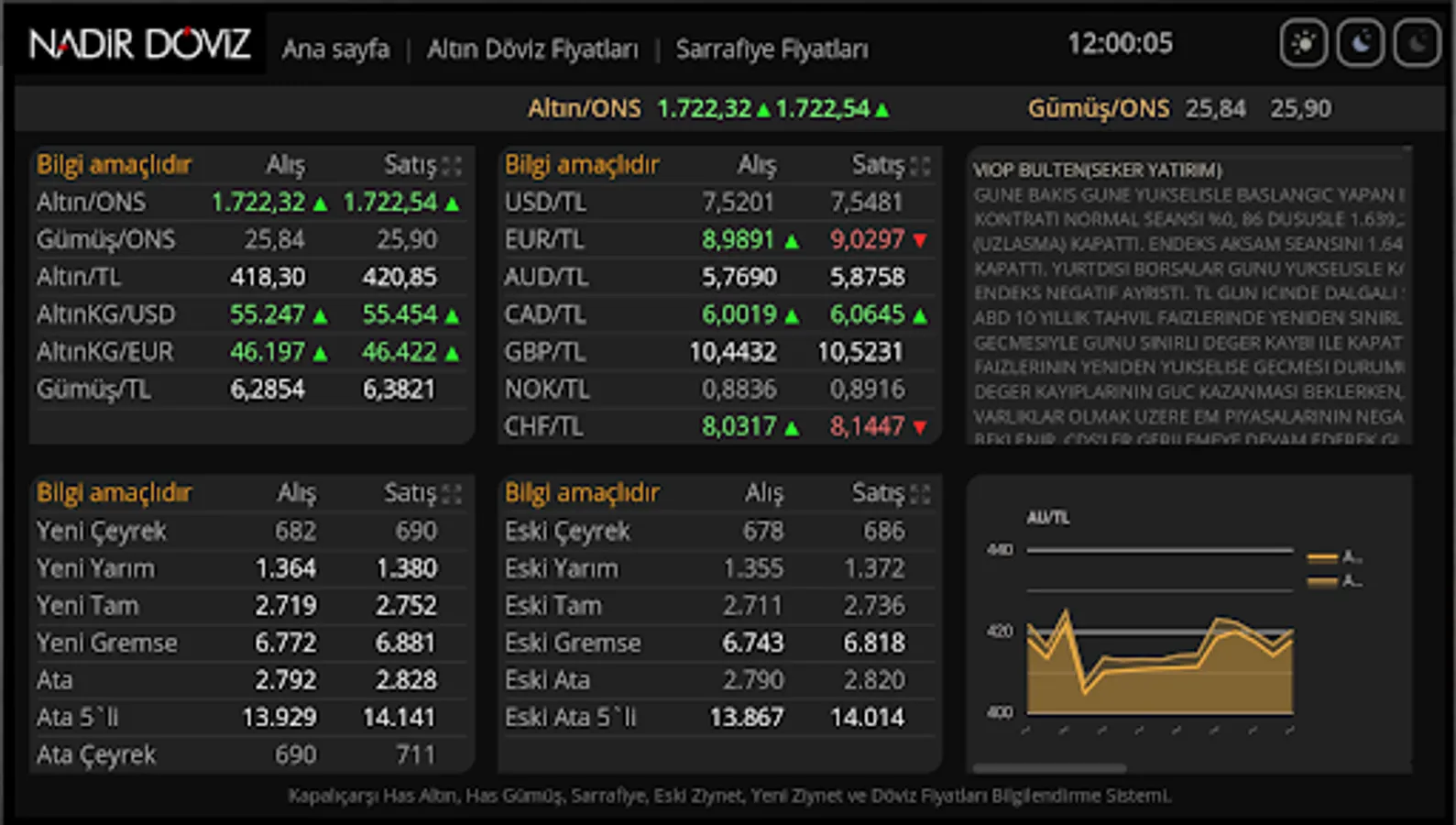 Grand Bazaar Has Gold, Pure Silver, Sarrafiye, Old Ornament, New Ornament, Dollar, Euro and Foreign Currency Prices Live Information System