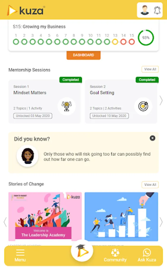 Kuza Leadership Academy is a comprehensive source of tools & resources that will help you achieve personal mastery, to learn, connect & grow the business. This app enables users to undertake learning at their own convenience & pace. The app has got a simple & intuitive interface that allows the users to navigate through the app with ease.