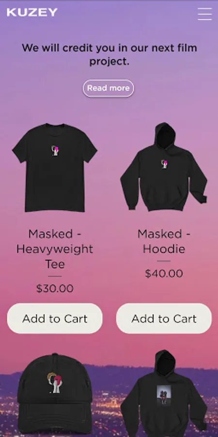 Kuzey is an app where you can watch films, view photographs, listen to music and shop merch all made by Kuzey.