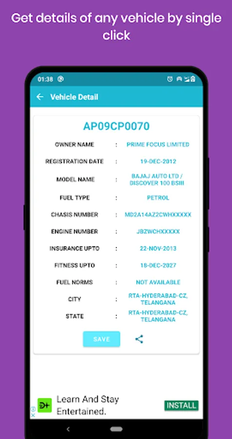 Disclaimer: We are not related to any RTO authority of India. All details shown in the app about vehicle owners are publicly available on the Parivahan website. We are only acting as an intermediary platform to make this information available to users easily via the app.