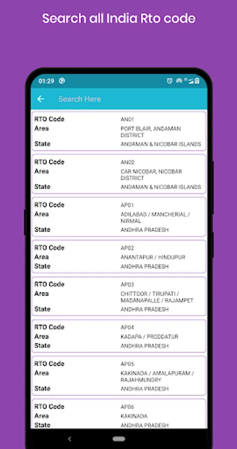 - App can find the rto registration number verification for the below states in india.
