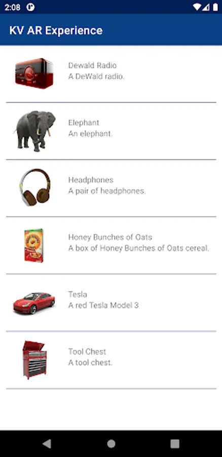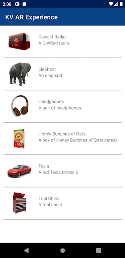 The KV AR Experience app lets you explore augmented reality with multiple different models to view and place in the world around you.