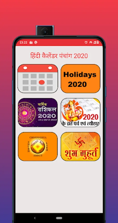 2020 calendar app contains high-resolution quality monthly images. This app allows you to view monthly sheet, Subha Muhurat, Vrath, Panchang 2020, and all holiday information for all days in the year 2020 and 2021 in Hindi.