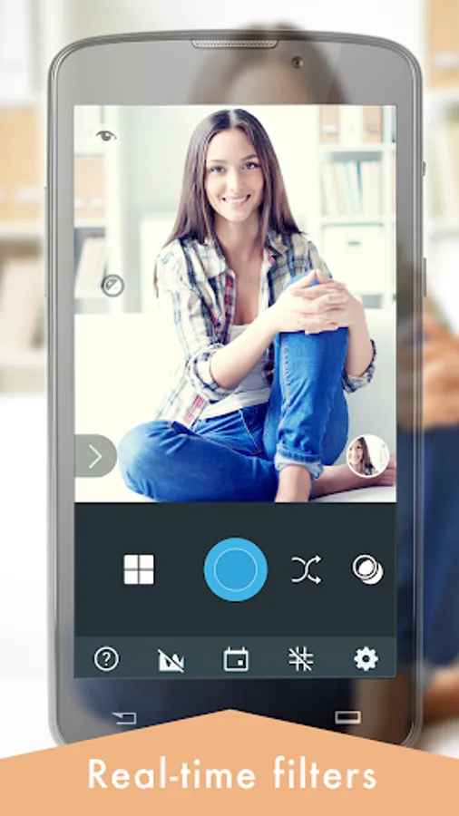 Real time effects. You can edit pictures in real time with photo editing tools, camera effects and live filters. Make snappic with live camera filters or make selfie video with live camera effects.