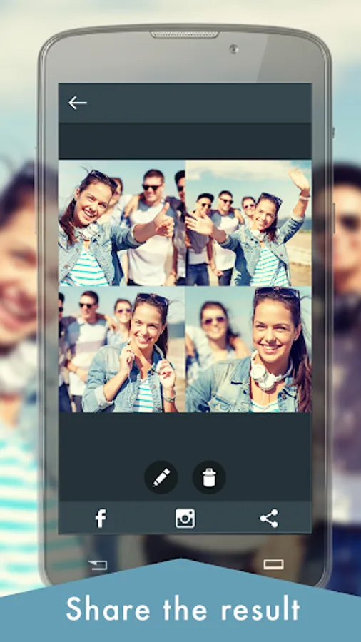 Multiple selfies. With beauty camera editor you can create quik grid. Selfie collage camera works in real time, so cool selfie will be ready in few seconds. Also you can add real-time filters in selfie collage maker.