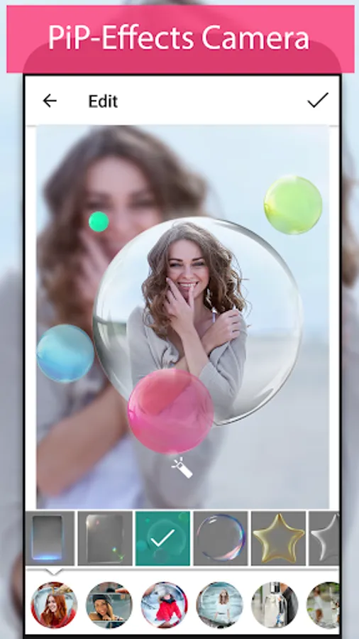 Use different PIP styles in the app to make your selfies and photos original and beautiful. There are many styles in the pip collection. You can put photos in the glass, cup, mirror, the tablet, snowflake, car mirror and etc.