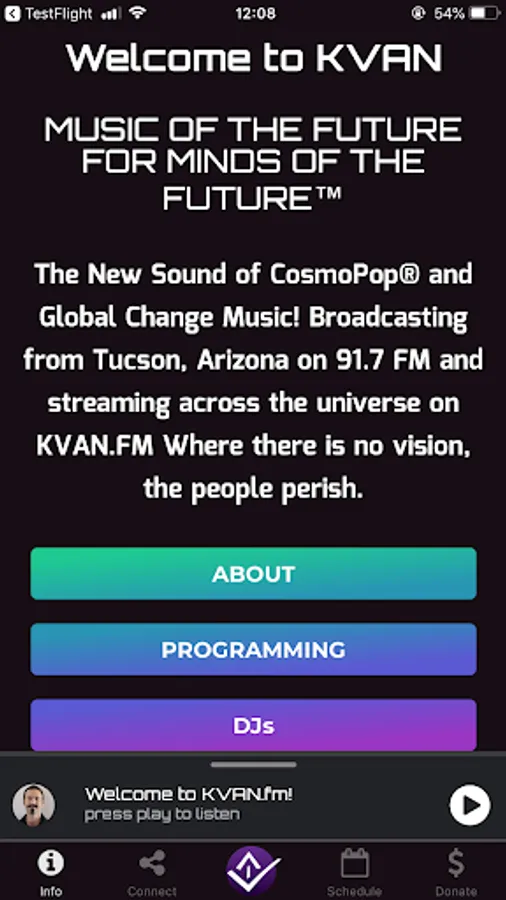 The New Sound of CosmoPop® and Global Change Music! Broadcasting from Tucson, Arizona on 91.7 FM and streaming across the universe on kvan.fm