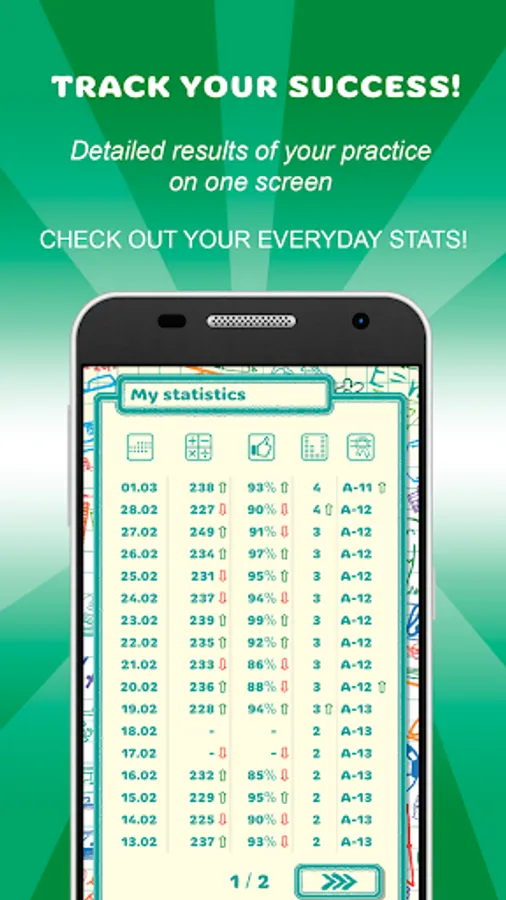 Application automatically tracks player stats and readiness for the next difficulty level. Your kid does not stands still doing same tasks but constantly moves forward mastering math skills.