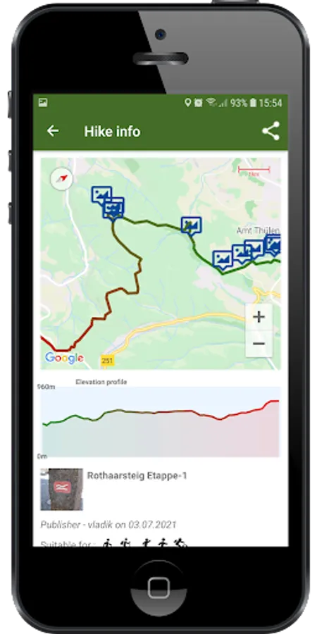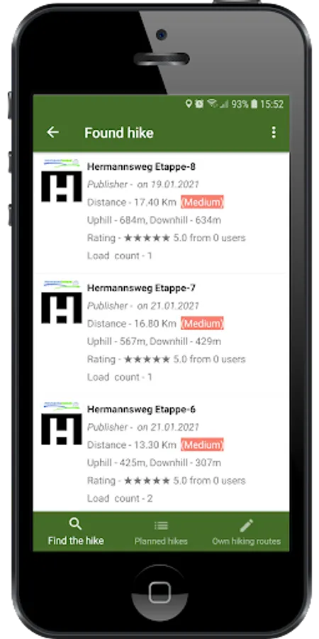 In our app you will always find a hike that suits you. Create your own tours, share them with your friends and the MyHike community. Easily rate hikes that you liked and save them as favorites.
