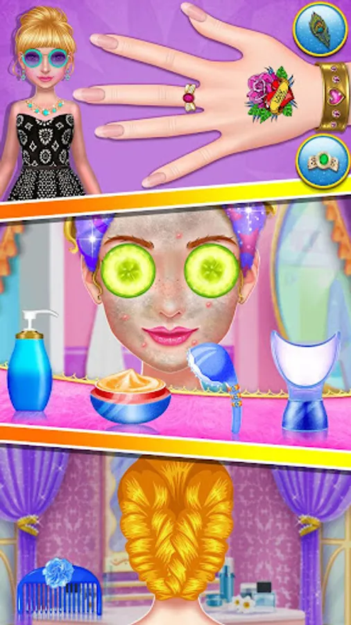 Would you like to start working your skills as a beautician on the once so beautiful queen? Get her face deep cleansed, then apply a soothing facial mask, too, next focus on all those nasty looking pimples that her once flawless facial skin's now completely covered in, remember to redefine her eyebrows, too, Next hurry up to give cute makeup girls a complete pampering too in spa view! Play shampooing and trimming session for all five prom girls. All princesses are looking to be like very polished, go ahead and get them styled up for that glam. Just admit it: this is one of the most impressive dressup and makeover spa games that you've recently enjoyed!