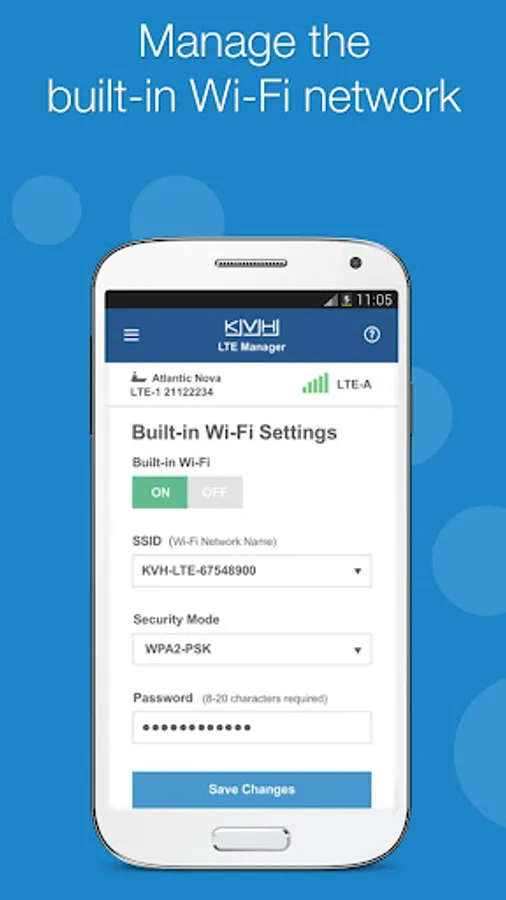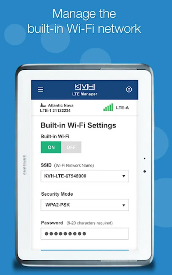 Manage the Built-in Wi-Fi Network: Maximize network security and protect against unauthorized use by giving your TracPhone LTE-1's built-in Wi-Fi network a unique name and password.