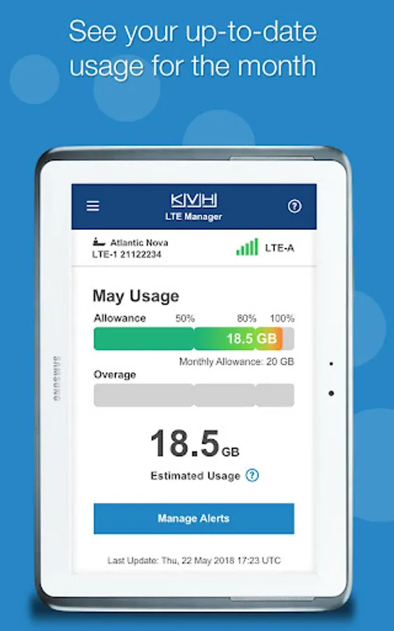KVH's TracPhone LTE-1 offers a new way to stay connected on your boat even as you leave the shore behind by delivering high-performance LTE-Advanced (LTE-A) service for HD streaming and Internet access more than 20 miles offshore. Take control of your onboard communications using the secure KVH LTE Manager anytime and anywhere. For more information, visit kvh.com/LTE.