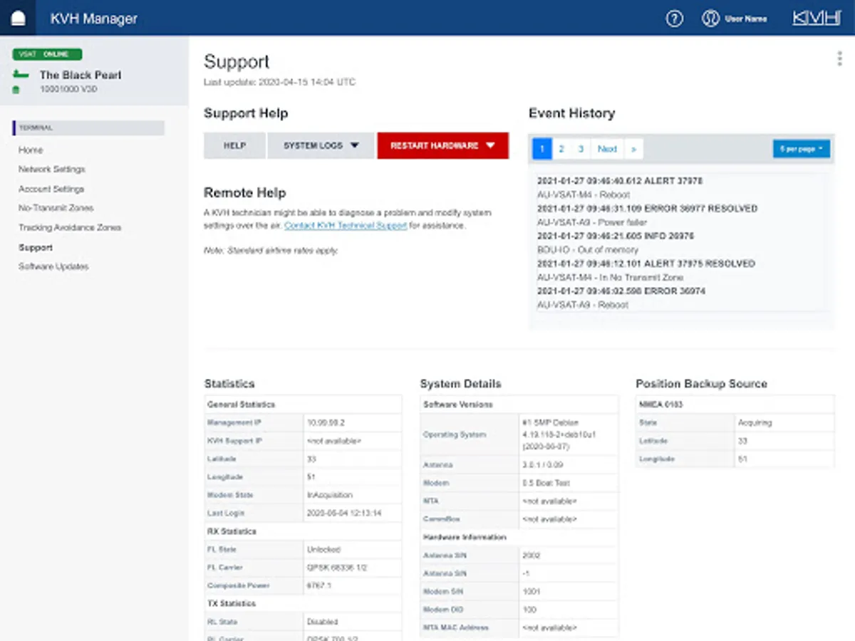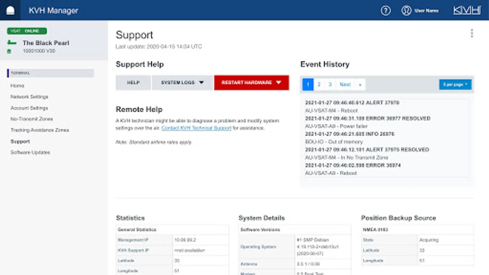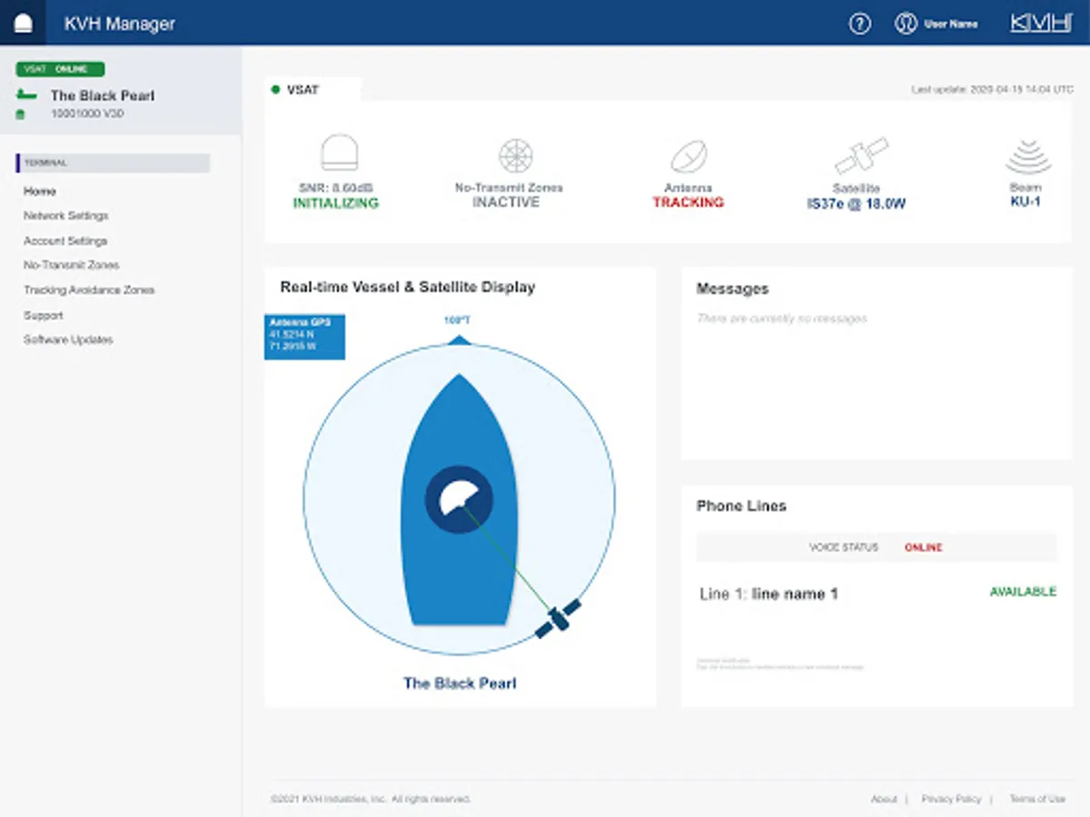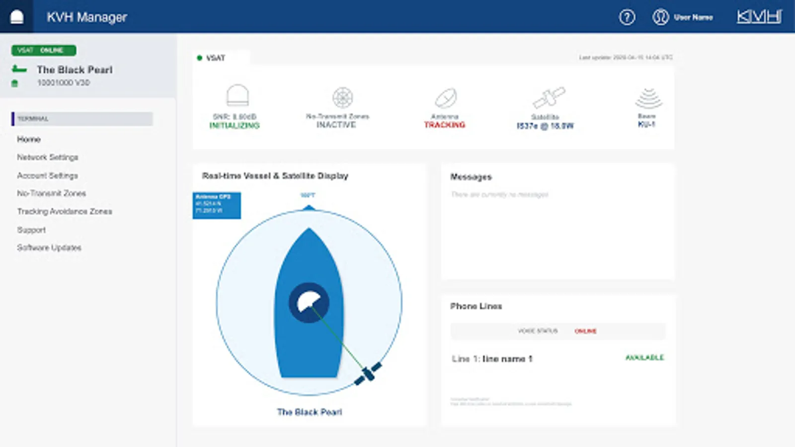 The KVH V30 app for your Android devices gives you easy access to your KVH V30 TracPhone Mini-VSAT HTS Broadband satellite communications system. The most advanced maritime VSAT satellite communications solution available, the TracPhone system will receive voice and data traffic from KVH's world-wide satellite network service. As you travel around the world, this app enables you to monitor available satellites providing network communications coverage for your current location by accessing your TracPhone system via the WiFi-equipped, IP-enabled antenna control unit. Using the app’s easy user interface, you can view the satellite signal strength and even download and install antenna software updates. If you ever have a question about your TracPhone system’s operation, the TracPhone app also includes a wide selection of Frequently Asked Questions as well as the ability to create a diagnostic log report and send it directly to KVH Technical Support for troubleshooting and assistance. Enjoying satellite communications on your boat has never been so easy!