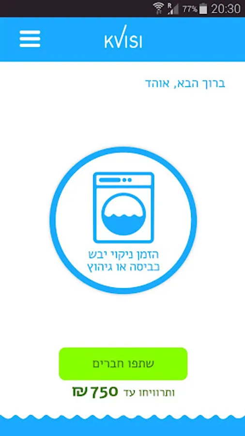 אפליקציה לשירות ניקוי יבש, גיהוץ וכביסה בזמן שנוח לך