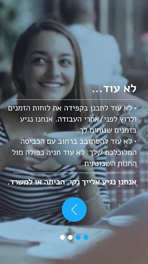 • לא עוד לתכנן בקפידה את לוחות הזמנים ולרוץ לפני/אחרי העבודה