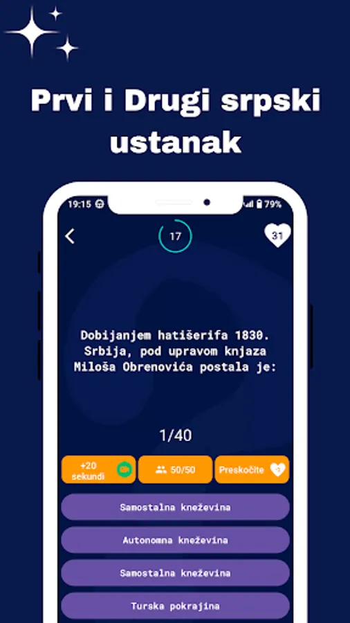 Povećajte Znanje: Istraživanje srpske istorije nikada nije bilo zabavnije. Povećajte svoje znanje o ključnim trenucima i likovima, istovremeno uživajući u svetu kvizova.