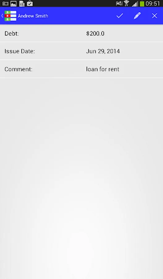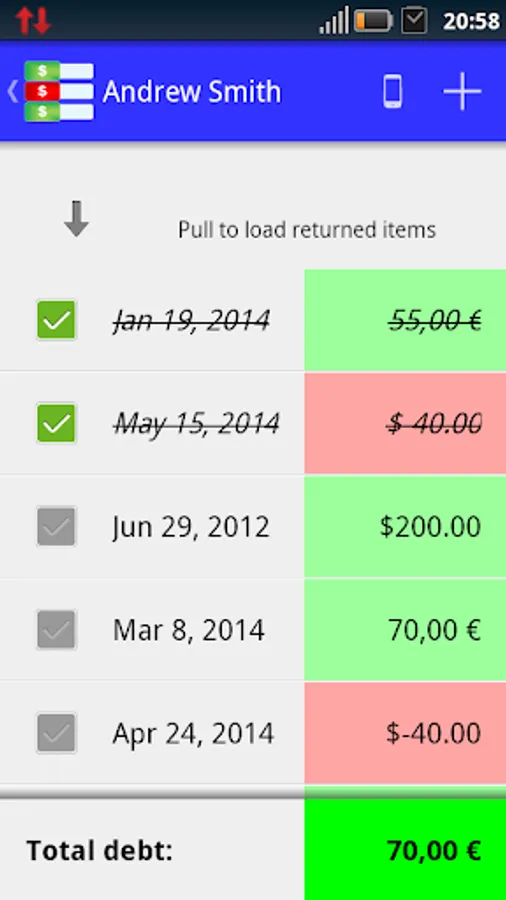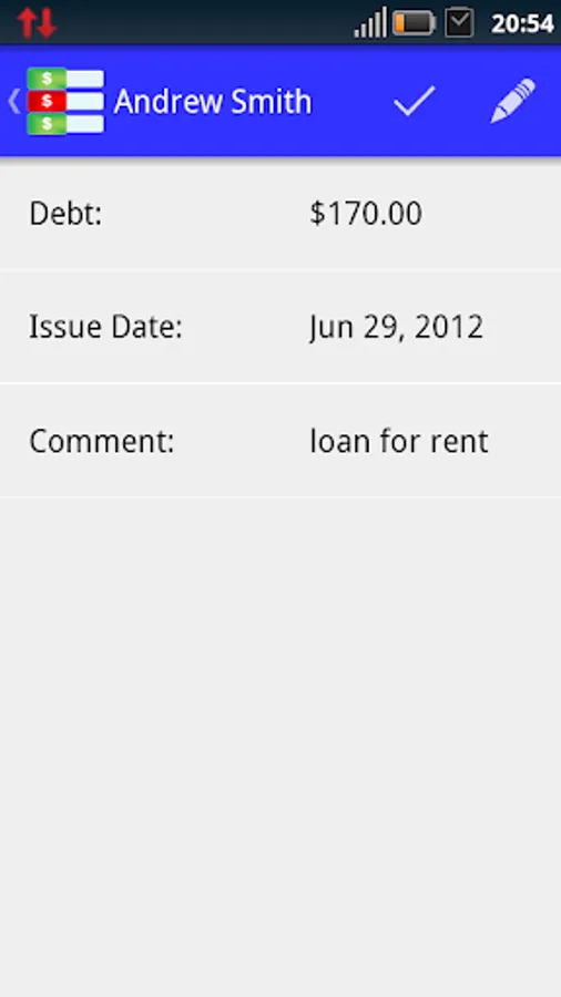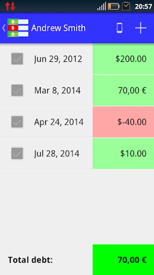 Moreover, "Debt Note" is linked to contact list of your device, so you can easily chase your debtors.