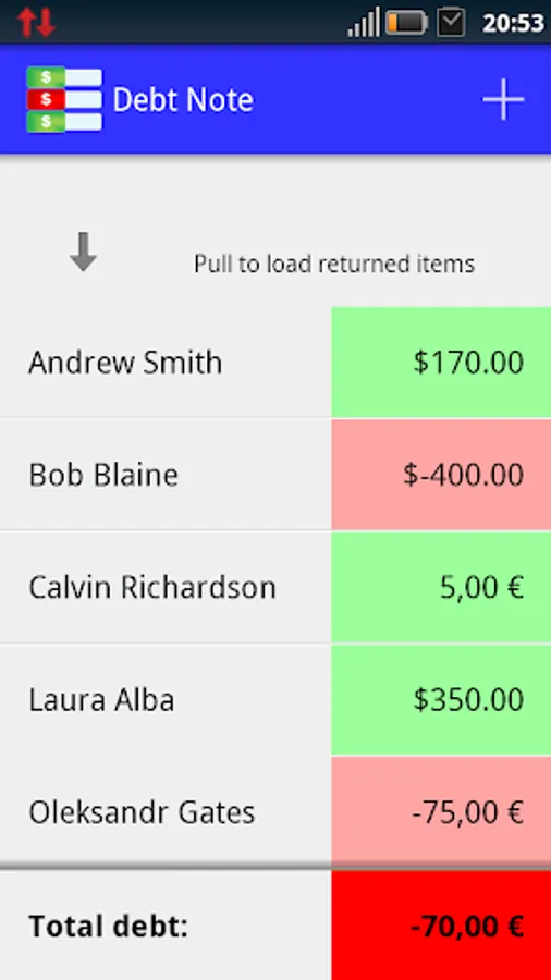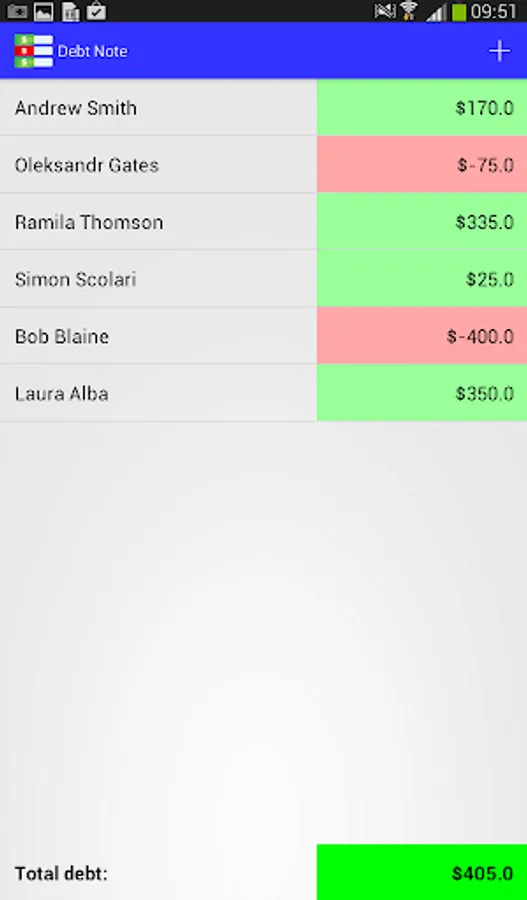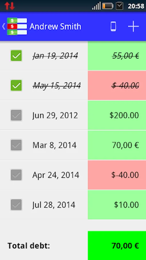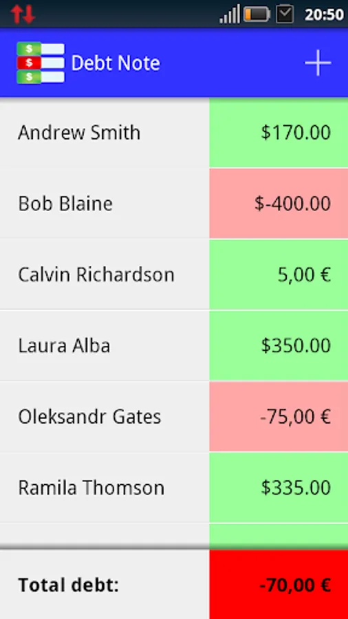 Moreover, "Debt Note Pro" is linked to contact list of your device, so you can easily chase your debtors.