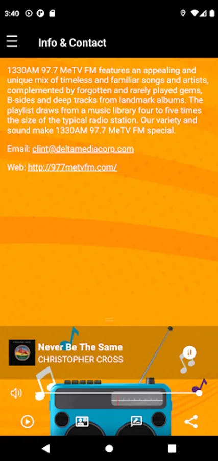 1330 AM 977 MeTV FM plays the features a unique mix of timeless and memorable music incorporating a wide variety of classic hits, deep tracks, and softer sounds spanning several decades of popular music, including the ‘60s and ‘70s with a touch of the ‘50s and ‘80s.